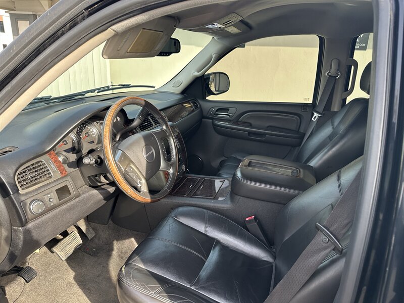 2007 GMC Yukon Denali CLEAN TITLE in Onyx Black with Ebony interior, powered by the factory 6.2L V8 OHV 16V. FINANCING AVAILABLE. The Denali comes factory-equipped with leather-appointed seating and heated front seats, power-adjustable front seats (driver memory), dual-zone automatic climate control, a premium audio system with steering-wheel audio controls, cruise control, remote keyless entry, power windows/locks/mirrors, distinctive chrome Denali exterior trim and alloy wheels, running boards and roof rails. Standard safety and convenience items include ABS, traction/stability control, multiple airbags and tire pressure monitoring, with a towing-capable chassis. Excellent overall condition with under 153,000 miles (averaging less than 8,000 miles/year); fuel economy is approximately 12 MPG city / 18 MPG highway.
