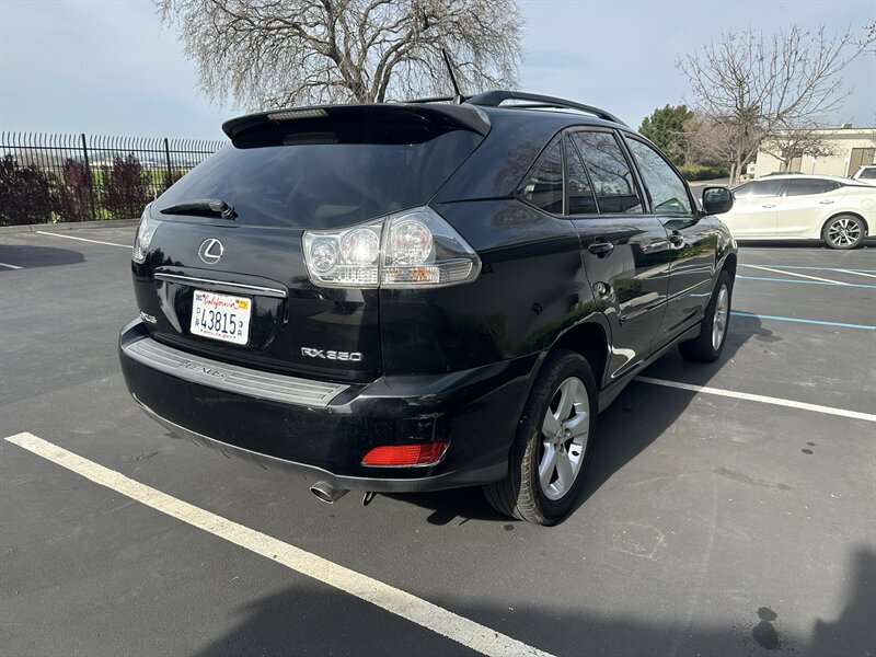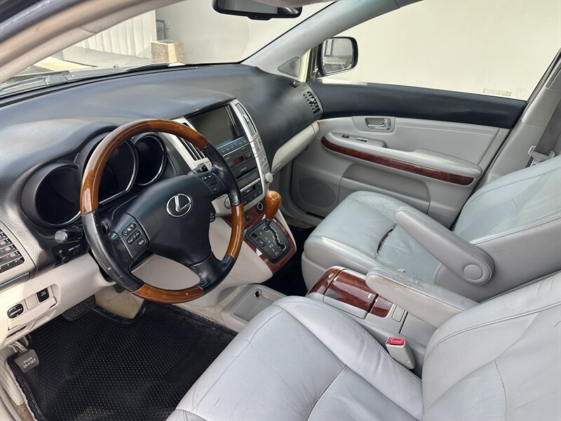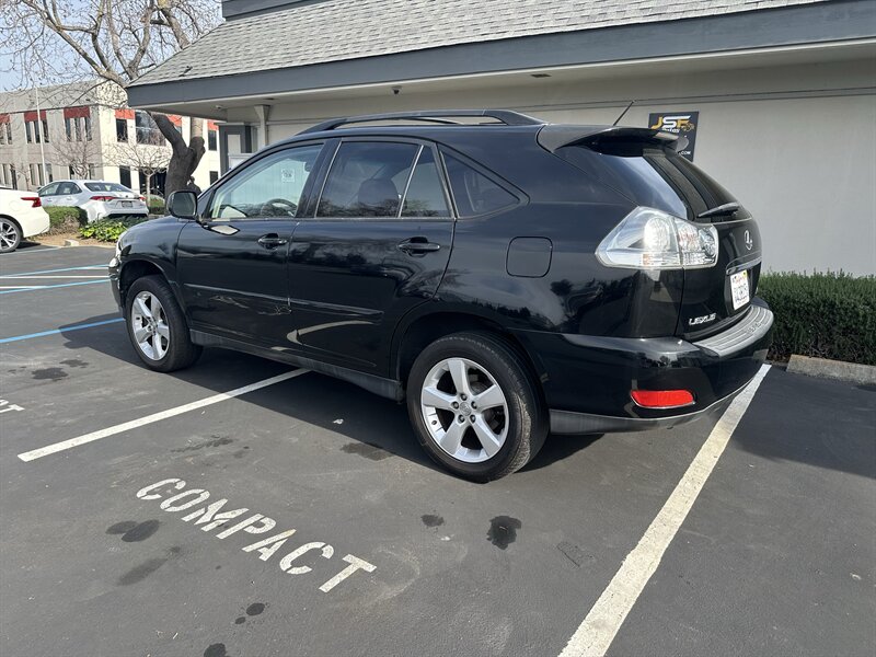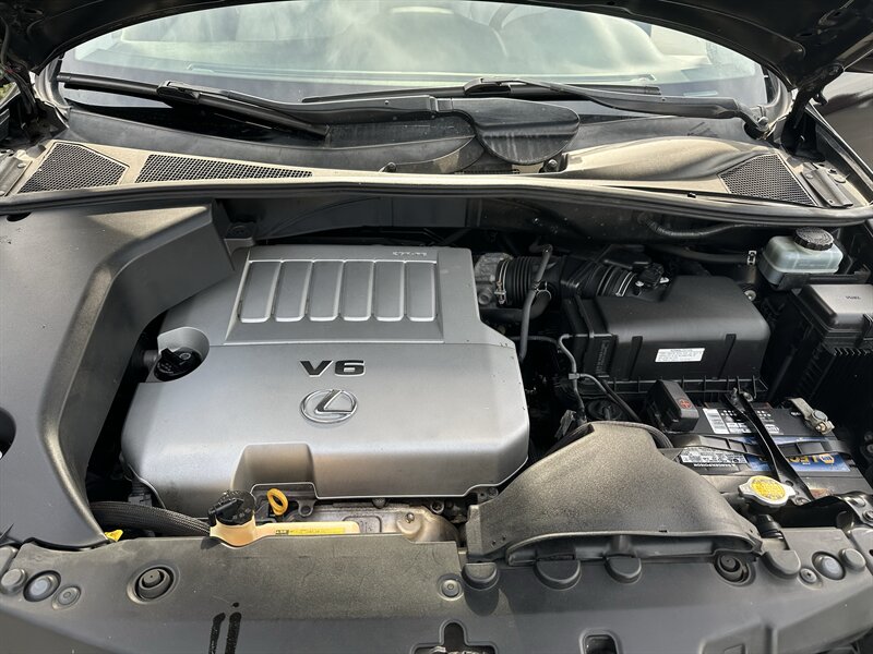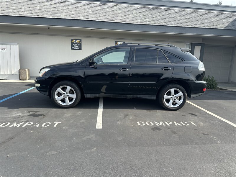2007 Lexus RX 350 CLEAN TITLE finished in Black with a Black interior, powered by a 3.5L V6 double overhead camshaft 24V engine. Factory-standard equipment includes leather-trimmed seating with power-adjustable front seats, dual-zone automatic climate control, power windows/locks/mirrors, cruise control, steering-wheel audio controls and a premium AM/FM/CD audio system, alloy wheels, and full safety equipment including anti-lock brakes, traction and stability control, front side and side-curtain airbags, and a tire-pressure monitoring system. Rated at 17 MPG city and 22 MPG highway, this vehicle is in excellent overall condition.