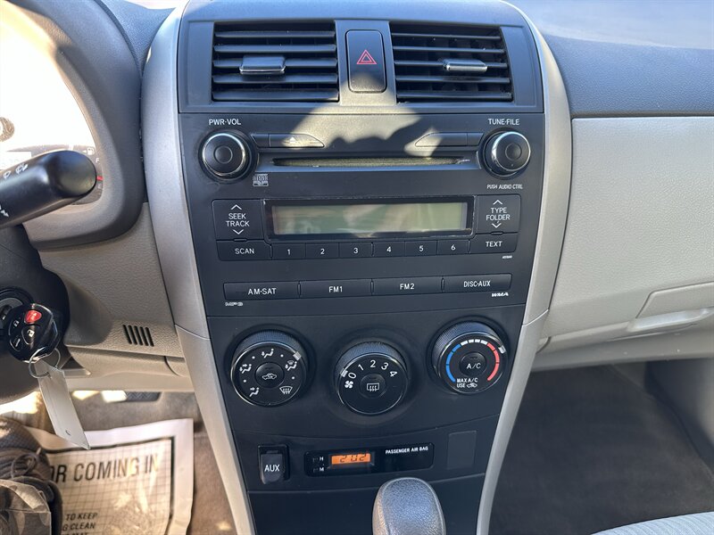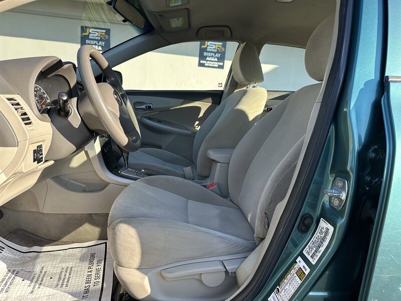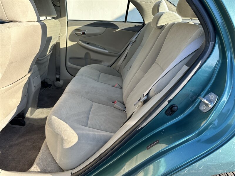 2010 Toyota Corolla LE CLEAN TITLE in Capri Sea Metallic with Bisque cloth interior. Powered by a 1.8L I4 (132 hp, 128 lb-ft), paired with the standard 5-speed manual or available 4-speed automatic. Factory equipment includes air conditioning, power windows and door locks with remote keyless entry, cruise control, tilt steering wheel, cloth seating with 60/40 split-folding rear seat, AM/FM/CD/MP3 audio with auxiliary input, 16-inch steel wheels with covers, intermittent wipers and halogen headlamps. Standard safety features include dual front airbags, front-seat side airbags, side curtain airbags and anti-lock brakes. Good mileage — under 161,000 miles (averaging less than 10,000 miles per year) — and rated at approximately 26 MPG city / 34 MPG highway. Vehicle is in excellent overall condition.