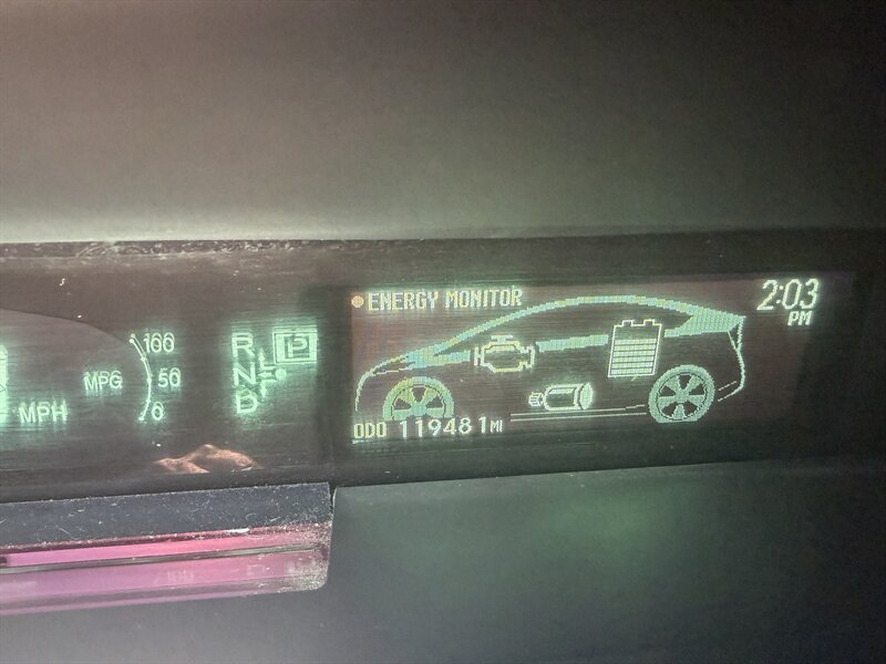 Factory-equipped features include hybrid system with regenerative braking and EV/ECO drive modes; multi-information display showing fuel economy and hybrid system status; navigation system with rearview camera; AM/FM/CD/MP3 audio with auxiliary input, Bluetooth hands-free and steering-wheel audio controls; dual-zone automatic climate control; power windows, door locks and mirrors; keyless entry with push-button start; heated front seats and 60/40 split-folding rear seat; alloy wheels, integrated rear spoiler and fog lights. Standard safety equipment includes ABS with electronic brake-force distribution, brake assist, traction control and vehicle stability control, front and side airbags, side-curtain airbags, Tire Pressure Monitoring System and LATCH child-seat anchors.
