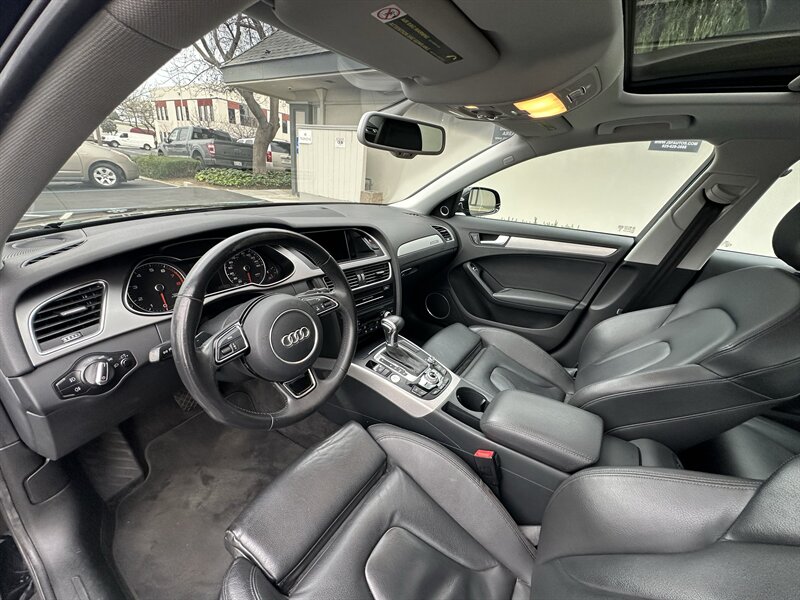 2013 Audi A4 2.0T quattro Premium Plus in Brilliant Black with Black interior. Powered by a 2.0L FlexFuel turbocharged I4 producing 211 hp and 258 lb-ft of torque, with Audi’s quattro all-wheel drive. Factory Premium Plus equipment includes leather seating surfaces with heated, power-adjustable front seats; dual-zone automatic climate control; a power tilt/slide sunroof; Audi MMI infotainment with Bluetooth and auxiliary input; Xenon headlights with LED daytime running lights; alloy wheels; and a full safety package with ABS, traction and stability control and multiple airbags. Excellent overall condition with under 108,000 miles (averaging less than 8,000 miles per year).