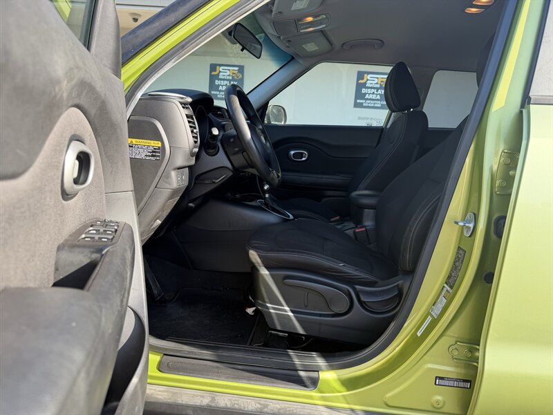 - Lighting & exterior: Distinctive boxy Soul silhouette with the Alien 2 paint color that stands out in the crowd. Factory halogen headlamps and integrated daytime running lights provide solid visibility. Power-adjustable side mirrors for convenience.