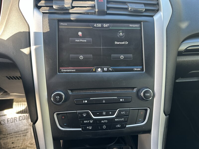 Dominate the commute in this 2016 Ford Fusion Hybrid SE CLEAN TITLE— 2.0L Hybrid I4 with 188 hp, EPA-rated 44 MPG city / 41 MPG highway, Shadow Black exterior, Ebony/Charcoal Black interior, under 86,000 miles (avg. <8,000/yr) and in excellent overall condition. Factory-equipped with Ford SYNC voice/Bluetooth, AM/FM/MP3 audio with USB/AUX, steering-wheel audio and cruise controls, power windows/locks/mirrors, remote keyless entry, alloy wheels, automatic headlights, full suite of airbags, ABS, traction/stability control, Tire Pressure Monitoring System, and the hybrid system with regenerative braking and e-CVT — all the essentials for efficiency, safety, and daily dominance. Ready now — don’t wait.