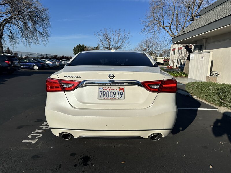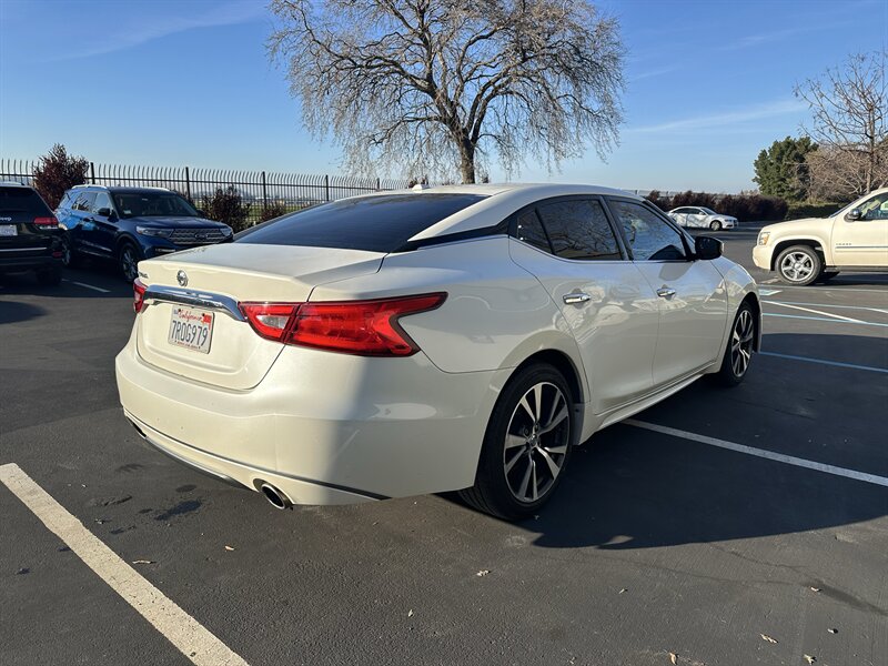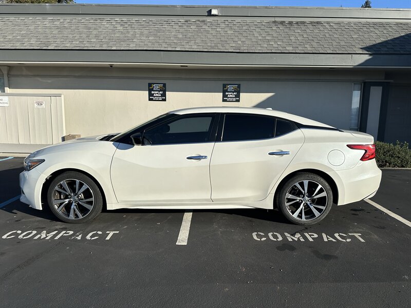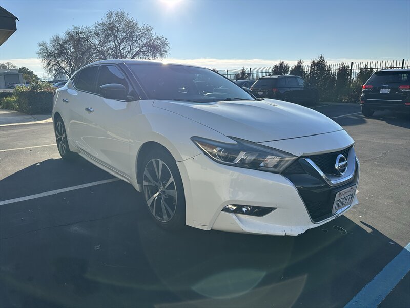 2016 Nissan Maxima 3.5 S — Pearl White exterior, Charcoal interior. Powered by a 3.5L V6 producing 300 hp and 261 ft-lbs of torque, paired with Nissan’s CVT and front-wheel drive; EPA-rated 22 MPG city / 30 MPG highway. Factory equipment includes 18-inch alloy wheels, automatic headlights, power mirrors, power windows and locks, remote keyless entry with push-button start, cruise control, leather-wrapped steering wheel, dual-zone automatic climate control, power-adjustable driver’s seat, Bluetooth hands-free audio and phone connectivity, USB/AUX inputs and AM/FM audio, rearview camera, anti-lock brakes, traction and stability control, multiple airbags and tire pressure monitoring. Vehicle is in excellent overall condition.